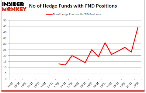 At the end of June, a total of 44 of the hedge funds tracked by Insider Monkey held long positions in this stock, a change of 91% from the previous quarter. By comparison, 21 hedge funds held shares or bullish call options in FND a year ago. So, let’s examine which hedge funds were among the top holders of the stock and which hedge funds were making big moves.