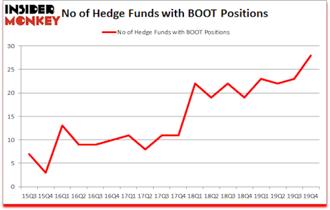 At the end of the fourth quarter, a total of 28 of the hedge funds tracked by Insider Monkey were bullish on this stock, a change of 22% from the previous quarter. Below, you can check out the change in hedge fund sentiment towards BOOT over the last 18 quarters. With hedgies’ capital changing hands, there exists a select group of noteworthy hedge fund managers who were increasing their stakes considerably (or already accumulated large positions).