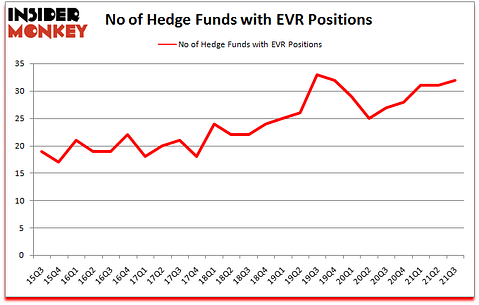 At the end of the third quarter, a total of 32 of the hedge funds tracked by Insider Monkey held long positions in this stock, a change of 3% from the second quarter of 2021. Below, you can check out the change in hedge fund sentiment towards EVR over the last 25 quarters. With the smart money’s sentiment swirling, there exists an “upper tier” of key hedge fund managers who were adding to their holdings meaningfully (or already accumulated large positions).