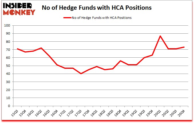 Is HCA Healthcare Inc (NYSE:HCA) a first-rate stock to buy now? The best stock pickers were betting on the stock. The number of bullish hedge fund positions moved up by 2 lately. HCA Healthcare Inc (NYSE:HCA) was in 73 hedge funds’ portfolios at the end of the fourth quarter of 2020. The all time high for this statistic is 87. Our calculations also showed that HCA isn’t among the 30 most popular stocks among hedge funds (click for Q4 rankings).