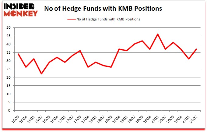 Is Kimberly Clark Corporation (NYSE:KMB) an attractive stock to buy now? The best stock pickers were becoming hopeful. The number of bullish hedge fund bets moved up by 6 in recent months. Kimberly Clark Corporation (NYSE:KMB) was in 37 hedge funds’ portfolios at the end of the second quarter of 2021. The all time high for this statistic is 46. Our calculations also showed that KMB isn’t among the 30 most popular stocks among hedge funds (click for Q2 rankings).