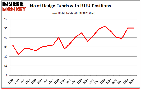 Heading into the first quarter of 2021, a total of 50 of the hedge funds tracked by Insider Monkey were bullish on this stock, a change of 0% from the previous quarter. By comparison, 47 hedge funds held shares or bullish call options in LULU a year ago. With hedgies’ sentiment swirling, there exists a few notable hedge fund managers who were increasing their stakes considerably (or already accumulated large positions).