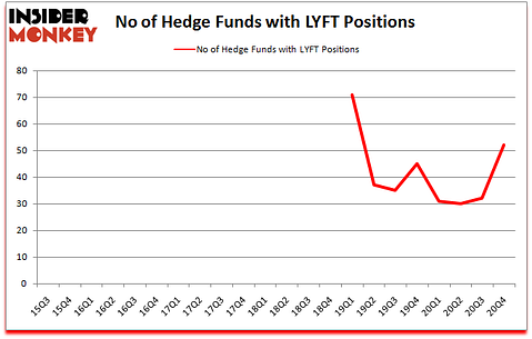 Lyft, Inc. (NASDAQ:LYFT) has experienced an increase in activity from the world’s largest hedge funds recently. Lyft, Inc. (NASDAQ:LYFT) was in 52 hedge funds’ portfolios at the end of December. The all time high for this statistic is 71. Our calculations also showed that LYFT isn’t among the 30 most popular stocks among hedge funds (click for Q4 rankings).