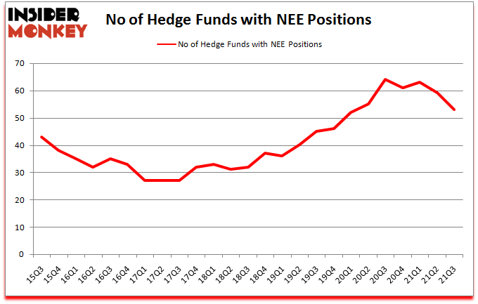Is NextEra Energy, Inc. (NYSE:NEE) a buy right now? Money managers were getting less optimistic. The number of long hedge fund bets fell by 6 in recent months. NextEra Energy, Inc. (NYSE:NEE) was in 53 hedge funds’ portfolios at the end of September. The all time high for this statistic is 64. Our calculations also showed that NEE isn’t among the 30 most popular stocks among hedge funds (click for Q3 rankings).