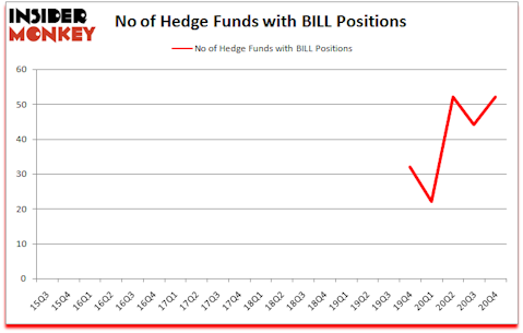 Bill.com Holdings, Inc. (NYSE:BILL) was in 52 hedge funds’ portfolios at the end of December. The all time high for this statistic is 52. This means the bullish number of hedge fund positions in this stock currently sits at its all time high. BILL investors should pay attention to an increase in hedge fund interest lately. There were 44 hedge funds in our database with BILL positions at the end of the third quarter. Our calculations also showed that BILL isn’t among the 30 most popular stocks among hedge funds (click for Q4 rankings).