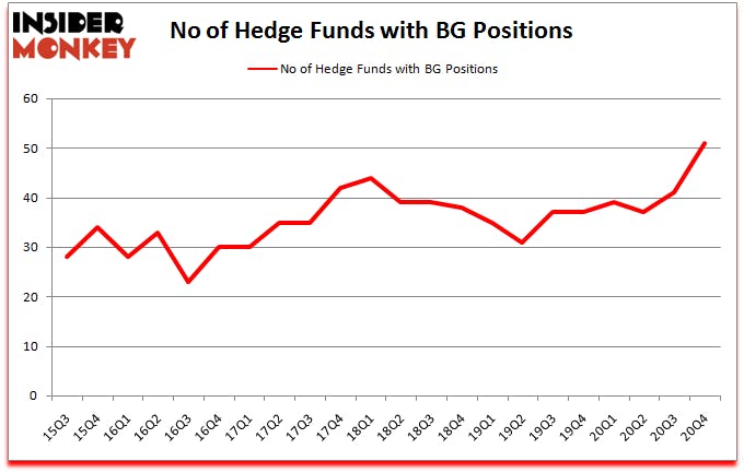 Bunge Limited (NYSE:BG) has seen an increase in hedge fund sentiment of late. Bunge Limited (NYSE:BG) was in 51 hedge funds’ portfolios at the end of the fourth quarter of 2020. The all time high for this statistic was previously 44. This means the bullish number of hedge fund positions in this stock currently sits at its all time high. There were 41 hedge funds in our database with BG holdings at the end of September. Our calculations also showed that BG isn’t among the 30 most popular stocks among hedge funds (click for Q4 rankings).