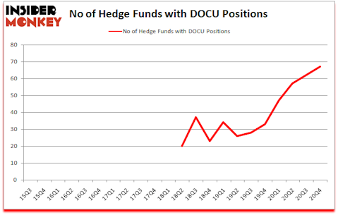 DocuSign, Inc. (NASDAQ:DOCU) has experienced an increase in hedge fund sentiment lately. DocuSign, Inc. (NASDAQ:DOCU) was in 67 hedge funds’ portfolios at the end of the fourth quarter of 2020. The all time high for this statistic was previously 62. This means the bullish number of hedge fund positions in this stock currently sits at its all time high. There were 62 hedge funds in our database with DOCU holdings at the end of September. Our calculations also showed that DOCU isn’t among the 30 most popular stocks among hedge funds (click for Q4 rankings).