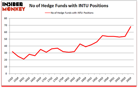 Heading into the first quarter of 2021, a total of 68 of the hedge funds tracked by Insider Monkey were bullish on this stock, a change of 26% from one quarter earlier. The graph below displays the number of hedge funds with bullish position in INTU over the last 22 quarters. So, let’s see which hedge funds were among the top holders of the stock and which hedge funds were making big moves.