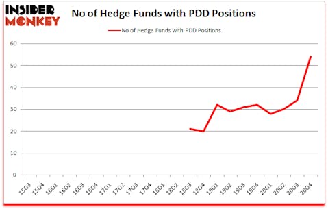 Pinduoduo Inc. (NASDAQ:PDD) shareholders have witnessed an increase in hedge fund sentiment lately. Pinduoduo Inc. (NASDAQ:PDD) was in 54 hedge funds’ portfolios at the end of December. The all time high for this statistic was previously 34. This means the bullish number of hedge fund positions in this stock currently sits at its all time high. Our calculations also showed that PDD isn’t among the 30 most popular stocks among hedge funds (click for Q4 rankings).