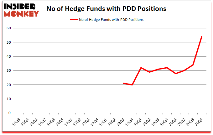 Pinduoduo Inc. (NASDAQ:PDD) shareholders have witnessed an increase in hedge fund sentiment lately. Pinduoduo Inc. (NASDAQ:PDD) was in 54 hedge funds’ portfolios at the end of December. The all time high for this statistic was previously 34. This means the bullish number of hedge fund positions in this stock currently sits at its all time high. Our calculations also showed that PDD isn’t among the 30 most popular stocks among hedge funds (click for Q4 rankings).