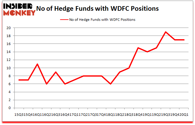 Heading into the second quarter of 2020, a total of 17 of the hedge funds tracked by Insider Monkey were bullish on this stock, a change of 0% from the previous quarter. Below, you can check out the change in hedge fund sentiment towards WDFC over the last 18 quarters. So, let’s find out which hedge funds were among the top holders of the stock and which hedge funds were making big moves.