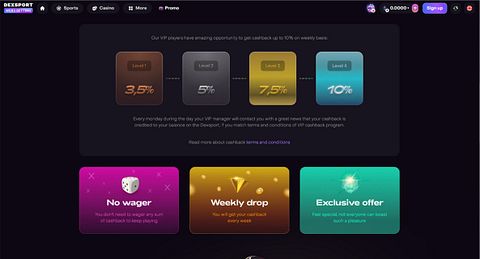 Dexsport offers a multi-tier bonus system aimed at both new and returning users: