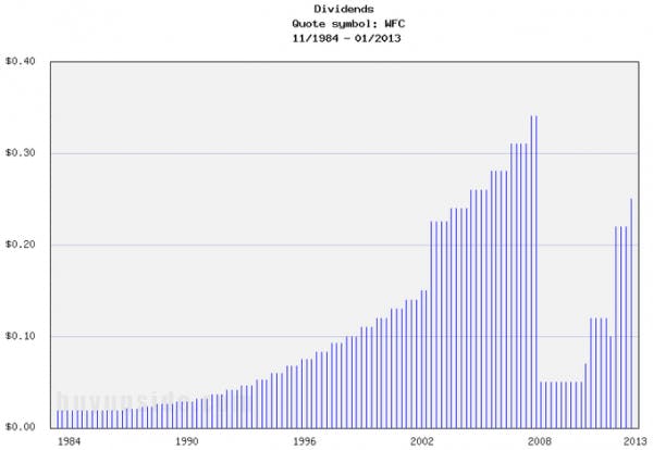 1). Dividend Growth: Since implementing their dividend program in 1939, Wells Fargo has consistently raised their dividend payouts and should continue to do so well into the future