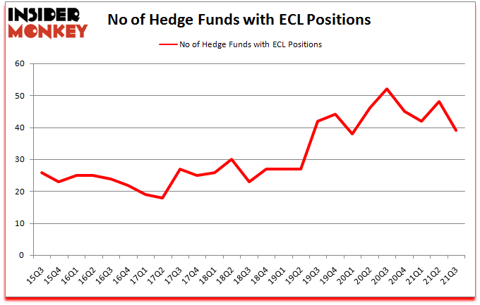 Ecolab Inc. (NYSE:ECL) has experienced a decrease in hedge fund sentiment lately. Ecolab Inc. (NYSE:ECL) was in 39 hedge funds’ portfolios at the end of the third quarter of 2021. The all time high for this statistic is 52. Our calculations also showed that ECL isn’t among the 30 most popular stocks among hedge funds (click for Q3 rankings).
