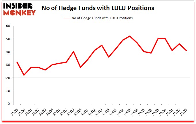Lululemon Athletica inc. (NASDAQ:LULU) has experienced a decrease in hedge fund sentiment lately. Lululemon Athletica inc. (NASDAQ:LULU) was in 41 hedge funds’ portfolios at the end of September. The all time high for this statistic is 52. There were 46 hedge funds in our database with LULU positions at the end of the second quarter. Our calculations also showed that LULU isn’t among the 30 most popular stocks among hedge funds (click for Q3 rankings).