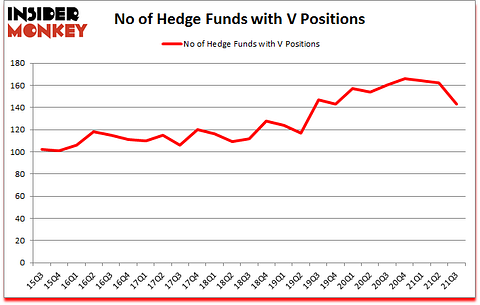 Is Visa Inc (NYSE:V) the right pick for your portfolio? Prominent investors were becoming less confident. The number of bullish hedge fund positions were trimmed by 19 in recent months. Visa Inc (NYSE:V) was in 143 hedge funds’ portfolios at the end of the third quarter of 2021. The all time high for this statistic is 166. Our calculations also showed that V ranked #8 among the 30 most popular stocks among hedge funds (click for Q3 rankings).