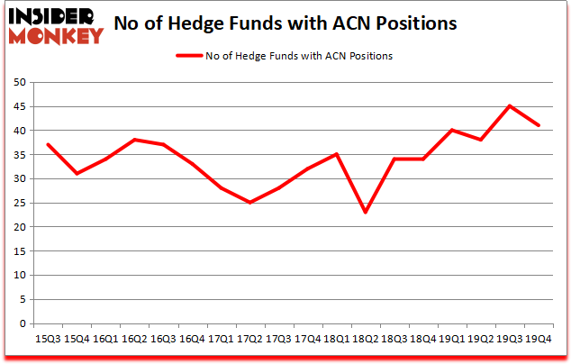 Accenture Plc (NYSE:ACN) was in 41 hedge funds’ portfolios at the end of December. ACN shareholders have witnessed a decrease in enthusiasm from smart money recently. There were 45 hedge funds in our database with ACN holdings at the end of the previous quarter. Our calculations also showed that ACN isn’t among the 30 most popular stocks among hedge funds (click for Q4 rankings and see the video at the end of this article for Q3 rankings).