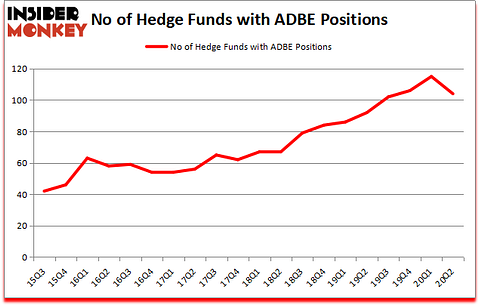 Adobe Inc. (NASDAQ:ADBE) has experienced a decrease in hedge fund interest lately. Adobe Inc. (NASDAQ:ADBE) was in 104 hedge funds’ portfolios at the end of June. The all time high for this statistics is 115. Our calculations also showed that ADBE ranks 19th among the 30 most popular stocks among hedge funds (click for Q2 rankings and see the video for a quick look at the top 5 stocks).