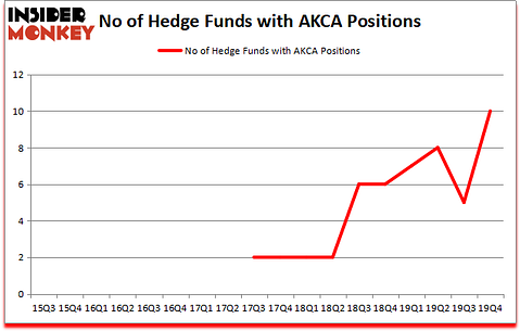 Heading into the first quarter of 2020, a total of 10 of the hedge funds tracked by Insider Monkey held long positions in this stock, a change of 100% from the third quarter of 2019. The graph below displays the number of hedge funds with bullish position in AKCA over the last 18 quarters. With hedgies’ capital changing hands, there exists a select group of key hedge fund managers who were increasing their holdings meaningfully (or already accumulated large positions).