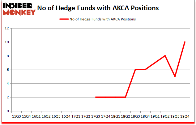Heading into the first quarter of 2020, a total of 10 of the hedge funds tracked by Insider Monkey held long positions in this stock, a change of 100% from the third quarter of 2019. The graph below displays the number of hedge funds with bullish position in AKCA over the last 18 quarters. With hedgies’ capital changing hands, there exists a select group of key hedge fund managers who were increasing their holdings meaningfully (or already accumulated large positions).