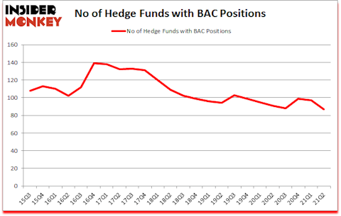 Bank of America Corporation (NYSE:BAC) has experienced a decrease in hedge fund sentiment of late. Bank of America Corporation (NYSE:BAC) was in 87 hedge funds’ portfolios at the end of June. The all time high for this statistic is 139. There were 97 hedge funds in our database with BAC holdings at the end of March. Our calculations also showed that BAC isn’t among the 30 most popular stocks among hedge funds (click for Q2 rankings).