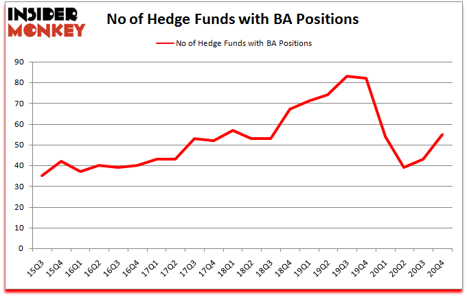 Heading into the first quarter of 2021, a total of 55 of the hedge funds tracked by Insider Monkey were bullish on this stock, a change of 28% from the third quarter of 2020. On the other hand, there were a total of 82 hedge funds with a bullish position in BA a year ago. With hedge funds’ capital changing hands, there exists a few notable hedge fund managers who were adding to their holdings substantially (or already accumulated large positions).