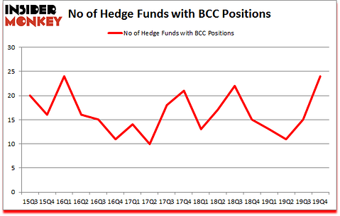 At Q4’s end, a total of 24 of the hedge funds tracked by Insider Monkey were long this stock, a change of 60% from the third quarter of 2019. The graph below displays the number of hedge funds with bullish position in BCC over the last 18 quarters. With hedge funds’ capital changing hands, there exists an “upper tier” of key hedge fund managers who were boosting their stakes significantly (or already accumulated large positions).