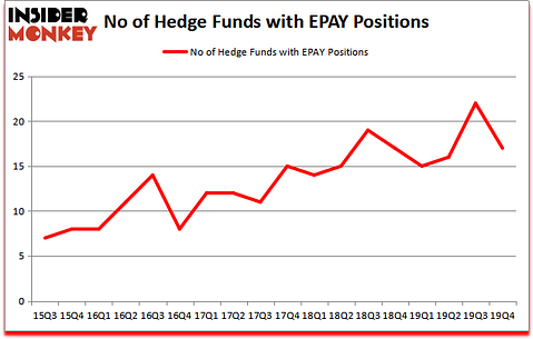 At Q4’s end, a total of 17 of the hedge funds tracked by Insider Monkey were bullish on this stock, a change of -23% from the previous quarter. By comparison, 17 hedge funds held shares or bullish call options in EPAY a year ago. With hedge funds’ positions undergoing their usual ebb and flow, there exists an “upper tier” of notable hedge fund managers who were adding to their holdings substantially (or already accumulated large positions).