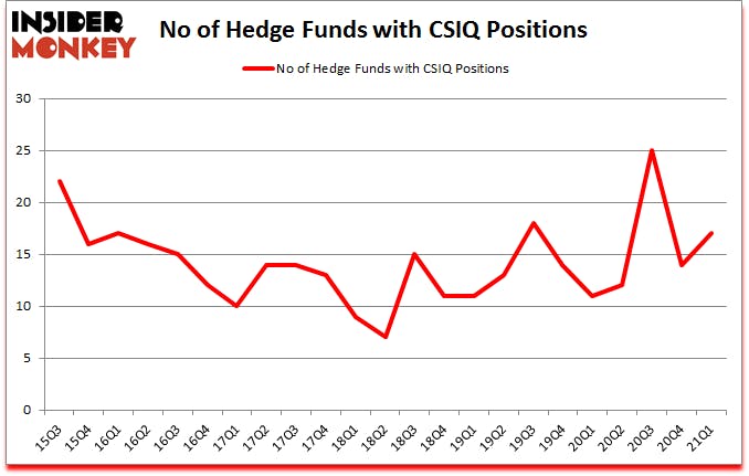 Canadian Solar Inc. (NASDAQ:CSIQ) was in 17 hedge funds’ portfolios at the end of the first quarter of 2021. The all time high for this statistic is 25. CSIQ has seen an increase in support from the world’s most elite money managers recently. There were 14 hedge funds in our database with CSIQ holdings at the end of December. Our calculations also showed that CSIQ isn’t among the 30 most popular stocks among hedge funds (click for Q1 rankings).