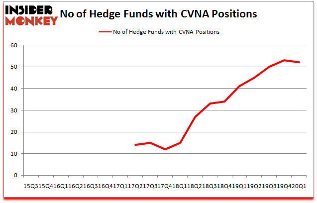 Carvana Co. (NYSE:CVNA) shareholders have witnessed a decrease in hedge fund sentiment of late. CVNA was in 52 hedge funds’ portfolios at the end of March. There were 53 hedge funds in our database with CVNA holdings at the end of the previous quarter. Our calculations also showed that CVNA isn’t among the 30 most popular stocks among hedge funds (click for Q1 rankings and see the video for a quick look at the top 5 stocks).