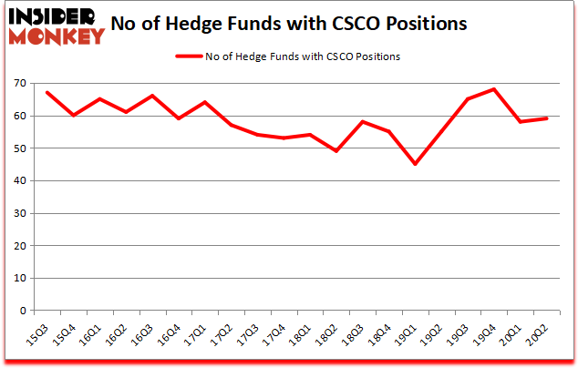 Is Cisco Systems, Inc. (NASDAQ:CSCO) an attractive investment now? The smart money was in a bullish mood. The number of long hedge fund positions advanced by 1 lately. Cisco Systems, Inc. (NASDAQ:CSCO) was in 59 hedge funds’ portfolios at the end of the second quarter of 2020. The all time high for this statistics is 68. Our calculations also showed that CSCO isn’t among the 30 most popular stocks among hedge funds (click for Q2 rankings and see the video for a quick look at the top 5 stocks).