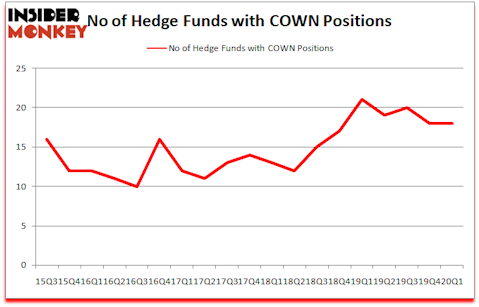At Q1’s end, a total of 18 of the hedge funds tracked by Insider Monkey were long this stock, a change of 0% from the previous quarter. The graph below displays the number of hedge funds with bullish position in COWN over the last 18 quarters. So, let’s find out which hedge funds were among the top holders of the stock and which hedge funds were making big moves.