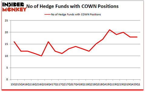 At Q1’s end, a total of 18 of the hedge funds tracked by Insider Monkey were long this stock, a change of 0% from the previous quarter. The graph below displays the number of hedge funds with bullish position in COWN over the last 18 quarters. So, let’s find out which hedge funds were among the top holders of the stock and which hedge funds were making big moves.