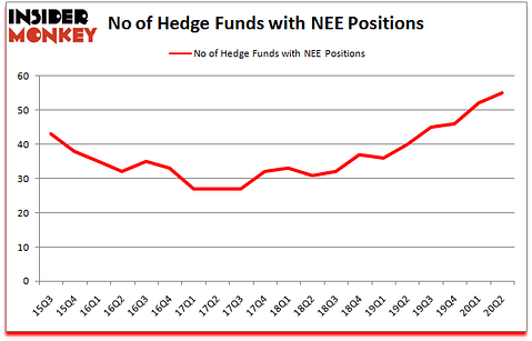NextEra Energy, Inc. (NYSE:NEE) has seen an increase in support from the world’s most elite money managers lately. NextEra Energy, Inc. (NYSE:NEE) was in 55 hedge funds’ portfolios at the end of the second quarter of 2020. The all time high for this statistics is 52. This means the bullish number of hedge fund positions in this stock currently sits at its all time high. Our calculations also showed that NEE isn’t among the 30 most popular stocks among hedge funds (click for Q2 rankings and see the video for a quick look at the top 5 stocks).