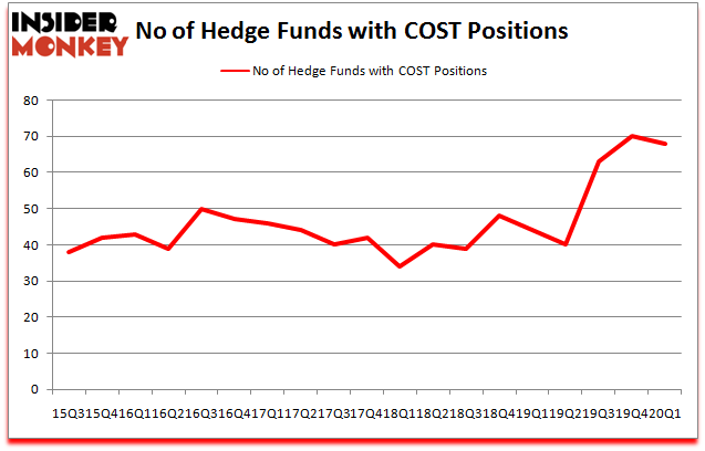 Costco Wholesale Corporation (NASDAQ:COST) shareholders have witnessed a decrease in enthusiasm from smart money in recent months. COST was in 68 hedge funds’ portfolios at the end of March. There were 70 hedge funds in our database with COST positions at the end of the previous quarter. Our calculations also showed that COST isn’t among the 30 most popular stocks among hedge funds (click for Q1 rankings and see the video for a quick look at the top 5 stocks).
