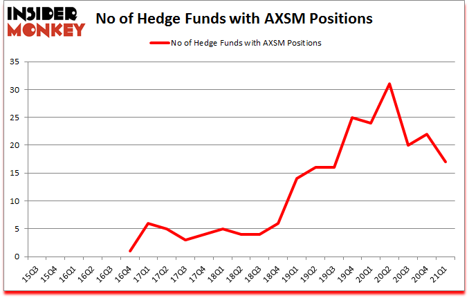 Axsome Therapeutics, Inc. (NASDAQ:AXSM) has seen a decrease in support from the world’s most elite money managers of late. Axsome Therapeutics, Inc. (NASDAQ:AXSM) was in 17 hedge funds’ portfolios at the end of the first quarter of 2021. The all time high for this statistic is 31. Our calculations also showed that AXSM isn’t among the 30 most popular stocks among hedge funds (click for Q1 rankings).