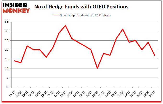 Heading into the second quarter of 2021, a total of 17 of the hedge funds tracked by Insider Monkey held long positions in this stock, a change of -29% from one quarter earlier. On the other hand, there were a total of 24 hedge funds with a bullish position in OLED a year ago. So, let’s find out which hedge funds were among the top holders of the stock and which hedge funds were making big moves.