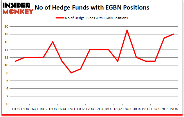 Heading into the first quarter of 2020, a total of 18 of the hedge funds tracked by Insider Monkey were bullish on this stock, a change of 6% from the third quarter of 2019. Below, you can check out the change in hedge fund sentiment towards EGBN over the last 18 quarters. With the smart money’s positions undergoing their usual ebb and flow, there exists a few notable hedge fund managers who were increasing their holdings significantly (or already accumulated large positions).