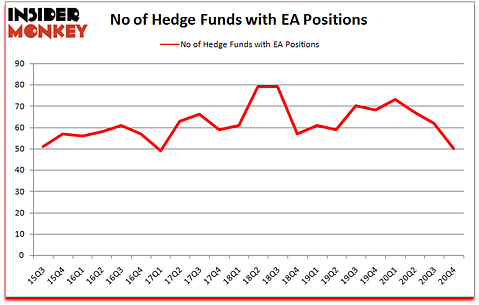 Electronic Arts Inc. (NASDAQ:EA) investors should be aware of a decrease in hedge fund sentiment in recent months. Electronic Arts Inc. (NASDAQ:EA) was in 50 hedge funds’ portfolios at the end of the fourth quarter of 2020. The all time high for this statistic is 79. There were 62 hedge funds in our database with EA holdings at the end of September. Our calculations also showed that EA isn’t among the 30 most popular stocks among hedge funds (click for Q4 rankings).
