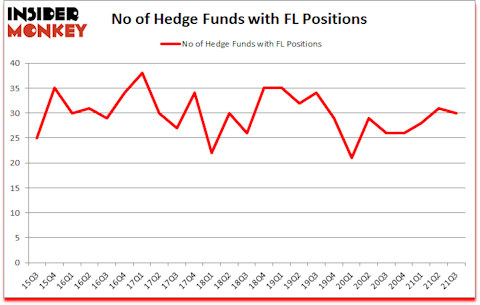 Heading into the fourth quarter of 2021, a total of 30 of the hedge funds tracked by Insider Monkey held long positions in this stock, a change of -3% from the previous quarter. The graph below displays the number of hedge funds with bullish position in FL over the last 25 quarters. With hedge funds’ capital changing hands, there exists a few notable hedge fund managers who were upping their stakes substantially (or already accumulated large positions).