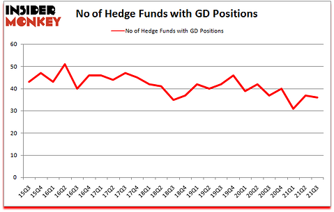 At the end of the third quarter, a total of 36 of the hedge funds tracked by Insider Monkey held long positions in this stock, a change of -3% from the previous quarter. Below, you can check out the change in hedge fund sentiment towards GD over the last 25 quarters. With hedge funds’ capital changing hands, there exists a select group of notable hedge fund managers who were adding to their holdings substantially (or already accumulated large positions).
