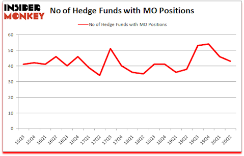 Is Altria Group Inc (NYSE:MO) ready to rally soon? The best stock pickers were cutting their exposure. The number of bullish hedge fund bets dropped by 3 in recent months. Altria Group Inc (NYSE:MO) was in 43 hedge funds’ portfolios at the end of the second quarter of 2020. The all time high for this statistics is 54. Our calculations also showed that MO isn’t among the 30 most popular stocks among hedge funds (click for Q2 rankings and see the video for a quick look at the top 5 stocks).