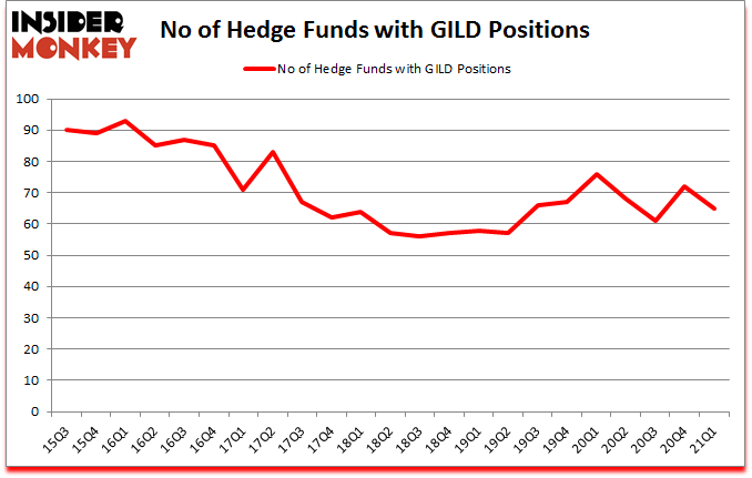 At the end of March, a total of 65 of the hedge funds tracked by Insider Monkey held long positions in this stock, a change of -10% from the fourth quarter of 2020. The graph below displays the number of hedge funds with bullish position in GILD over the last 23 quarters. So, let’s check out which hedge funds were among the top holders of the stock and which hedge funds were making big moves.