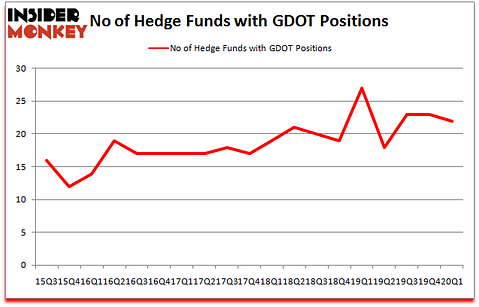 At the end of the first quarter, a total of 22 of the hedge funds tracked by Insider Monkey held long positions in this stock, a change of -4% from one quarter earlier. By comparison, 27 hedge funds held shares or bullish call options in GDOT a year ago. With hedgies’ capital changing hands, there exists a few key hedge fund managers who were boosting their stakes substantially (or already accumulated large positions).