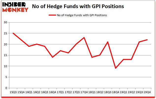 Heading into the first quarter of 2020, a total of 22 of the hedge funds tracked by Insider Monkey held long positions in this stock, a change of 5% from the previous quarter. Below, you can check out the change in hedge fund sentiment towards GPI over the last 18 quarters. With hedgies’ positions undergoing their usual ebb and flow, there exists a select group of key hedge fund managers who were adding to their stakes substantially (or already accumulated large positions).