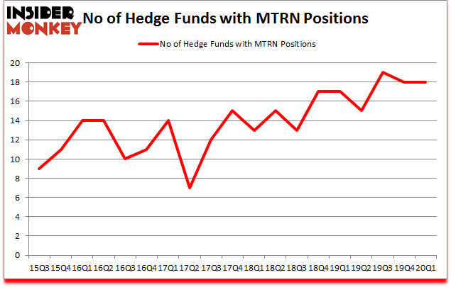 At the end of the first quarter, a total of 18 of the hedge funds tracked by Insider Monkey held long positions in this stock, a change of 0% from the fourth quarter of 2019. Below, you can check out the change in hedge fund sentiment towards MTRN over the last 18 quarters. So, let’s find out which hedge funds were among the top holders of the stock and which hedge funds were making big moves.