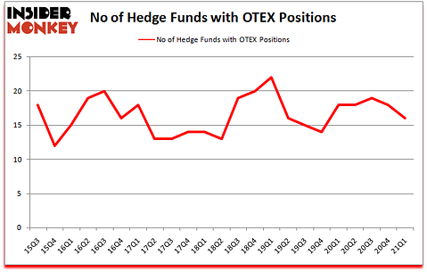Open Text Corporation (NASDAQ:OTEX) was in 16 hedge funds’ portfolios at the end of March. The all time high for this statistic is 22. OTEX has experienced a decrease in activity from the world’s largest hedge funds in recent months. There were 18 hedge funds in our database with OTEX positions at the end of the fourth quarter. Our calculations also showed that OTEX isn’t among the 30 most popular stocks among hedge funds (click for Q1 rankings).