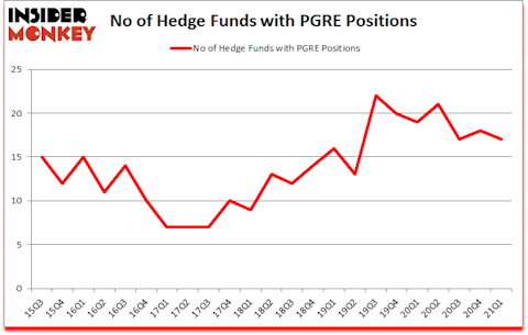 Heading into the second quarter of 2021, a total of 17 of the hedge funds tracked by Insider Monkey held long positions in this stock, a change of -6% from the previous quarter. Below, you can check out the change in hedge fund sentiment towards PGRE over the last 23 quarters. So, let’s examine which hedge funds were among the top holders of the stock and which hedge funds were making big moves.