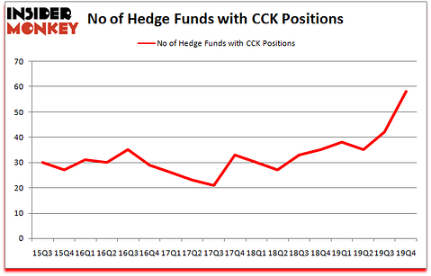 At Q4’s end, a total of 58 of the hedge funds tracked by Insider Monkey held long positions in this stock, a change of 38% from one quarter earlier. The graph below displays the number of hedge funds with bullish position in CCK over the last 18 quarters. With the smart money’s capital changing hands, there exists a select group of noteworthy hedge fund managers who were boosting their stakes meaningfully (or already accumulated large positions).