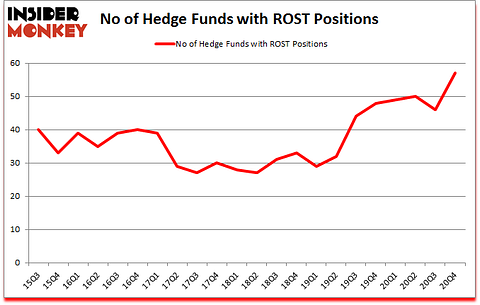 Ross Stores, Inc. (NASDAQ:ROST) investors should pay attention to an increase in hedge fund interest of late. Ross Stores, Inc. (NASDAQ:ROST) was in 57 hedge funds’ portfolios at the end of December. The all time high for this statistic was previously 50. This means the bullish number of hedge fund positions in this stock currently sits at its all time high. There were 46 hedge funds in our database with ROST positions at the end of the third quarter. Our calculations also showed that ROST isn’t among the 30 most popular stocks among hedge funds (click for Q4 rankings).
